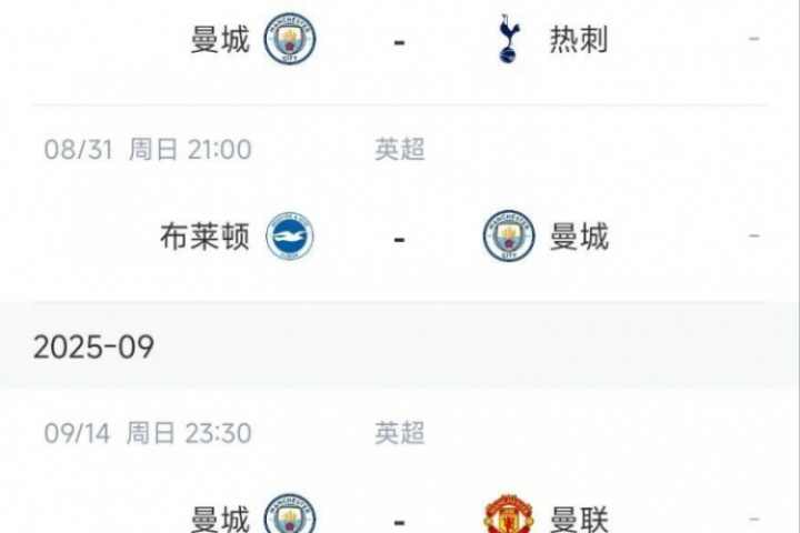 作为夺冠大热门之一,曼城在第1轮就开始领跑英超。但是接下来4轮球队将面临严峻的考验,他们将连续对阵热刺、布莱顿、曼联和阿森纳。