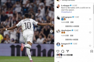 姆巴佩社媒晒出庆祝进球的照片,并配文:“重返伯纳乌,以一场扎实的胜利开启新赛季。”