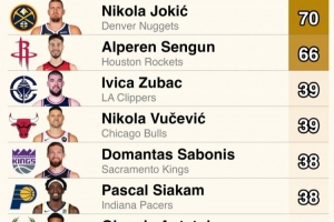 上赛季NBA自投自抢进攻篮板数排名(没有被封盖的情况下)