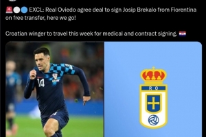 体育资讯8月20日讯 据知名转会专家罗马诺报道,皇家奥维耶多将签下克罗地亚球员布雷卡洛,Here we go!