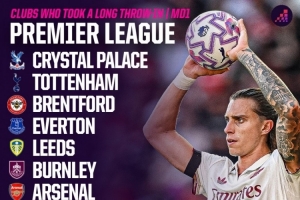 Opta指出,本赛季英超首轮共有11支球队至少向对方禁区发出一次长距离界外球,而上赛季首轮只有4支球队这样做。