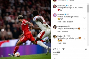 迪亚斯社媒晒出比赛照片,配文:“安联球场的难忘夜晚。”