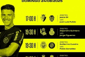 体育资讯8月23日讯 西甲官方更新社媒动态,公布了当地时间8月24日(本周日)四场比赛的裁判安排。