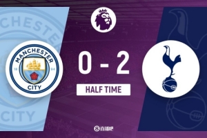 第45+2分钟,特拉福德出球失误,热刺禁区内抢断,帕利尼亚破门攻入热刺处子球,热刺2-0领先曼城↓
