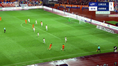 比赛第36分钟,玉昆右路传中,禁区弧顶罗竞背对球门,停球后直接选择倒钩!足球击中横梁后被刘殿座没收。