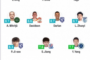 数据平台Sofascore对本轮中超最佳球员进行评选,其中玉昆、三镇和浙江队各有2将入选,米特里策、费利佩等入选。