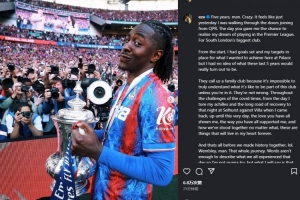 体育资讯8月24日讯 转会阿森纳的埃泽更新社媒告别水晶宫。