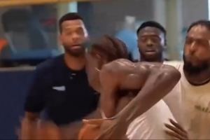 艾顿参与多人对抗训练锤炼持球进攻,展现转身抛投、欧洲步上篮、急停跳投、中远投等进攻技巧。