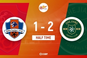 第41分钟,刘云点射命中,梅州客家1-0领先浙江队↓