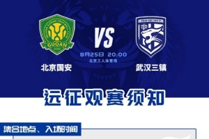 8月25日,武汉三镇将在2025中超联赛第22轮中客场对阵北京国安。即将与各位远征军在看台上相见,期待我们的战斗时刻!
