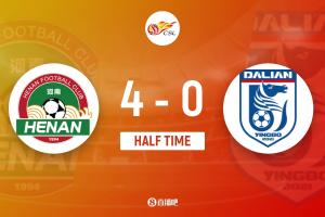 上半场补时第3分钟,纳萨里奥挑传身后,阿奇姆彭前插单刀吊射破门,河南队4-0领先大连英博。↓