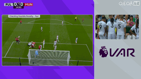 英超官方解释点球判罚:“经过VAR复核后,主裁判推翻了巴锡对芒特犯规不判点球的最初判罚。主裁判宣布:‘复核认定,富勒姆3号球员将曼联球员拉拽倒地。最终判罚为点球。’”