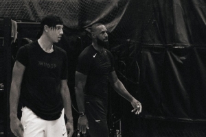 约翰逊晒出一组个人训练照,其中包括一张与湖人前锋詹姆斯的训练合照。
