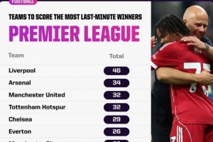 体育资讯8月27日讯 英超次轮比赛,利物浦在客场凭借小将恩古莫哈的绝杀球力克纽卡。在英超历史上,利物浦是绝杀次数最多的球队,达到了46次。
