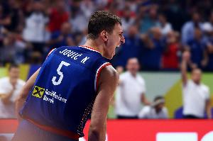 此役,塞尔维亚新星约维奇出战三节,登场15分51秒,投篮8中6,三分4中3,罚球3中3,得到18分4板6助1断,正负值+36。