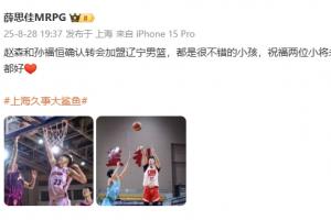 体育资讯08月28日讯 据《东方体育日报》记者薛思佳报道,上海男篮小将赵森和孙福恒确认转会加盟辽宁男篮。