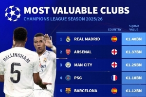 下一篇: 皇马本赛季欧冠对手身价:曼城12.5亿欧最高,利物浦10.5亿欧次席