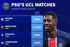 体育资讯8月29日讯 本赛季欧冠联赛阶段对阵抽签结果出炉,德国转会市场盘点了巴黎对手的身价。