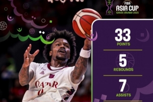 不过卡塔尔男篮的归化球员、上海外援古德温打出精彩表现,出战35分钟09秒,17投10中,三分9投4中,罚球11罚9中,砍下33分5篮板7助攻2抢断,不过也有6次失误。