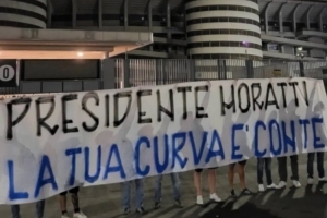 国米球迷组织北看台拉出横幅,为莫拉蒂送上祝福,上面写着:“莫拉蒂主席,你的北看台与你同在。”