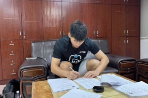 陈家政晒出自己签约的照片,配文写道:“归零 重启 向上 感恩一切。”