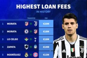 最贵租借榜:杰克逊将成历史第三贵租借交易,莫拉塔1800万欧居首