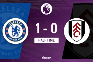 上半场补时8分钟。半场战罢,切尔西1-0富勒姆。