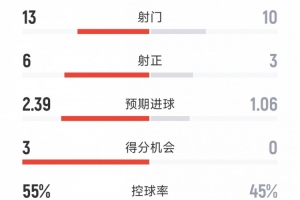 控球率:55%-45%