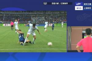 体育资讯08月31日讯 比赛第39分钟,特谢拉踩踏邓涵文脚踝,裁判在观看VAR后表示够不上红牌标准,对特谢拉出示黄牌。