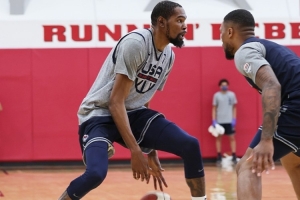 由于小腿受伤,杜兰特错过了所有奥运会前的热身赛,并在对阵塞尔维亚的比赛中首次亮相。尽管缺席了一段时间,他替补出场后仍然立即发挥了作用。