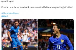由于谢尔基股四头肌撕裂,主教练德尚决定征召埃基蒂克入选本期国家队。