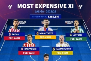 前锋:巴埃纳(4200万欧)、米卡乌塔泽(3100万欧)、安东尼(2200万欧)