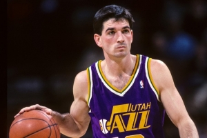 约翰-斯托克顿代表爵士共出战了1,686场常规赛和季后赛,这是NBA历史上为单一球队效力场次最多的纪录。