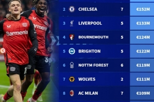 2、切尔西 7人 1.52亿欧