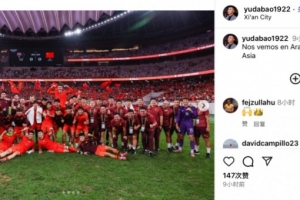 赛后前国脚、现担任U22国足教练组成员的于大宝更新社媒,晒出了赛后全队庆祝的合照,并用葡语写道:“让我们沙特再见。”