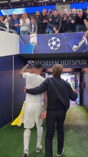 赛后,热刺队长罗梅罗和主帅弗兰克共同返回球员通道,而主帅弗兰克似乎显得比自己的队员们更激动一些,他兴奋地与罗梅罗说着些什么。