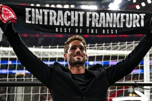 法兰克福门将特拉普今夏转会巴黎FC,法兰克福本场比赛之前向前队长致敬,并与之告别,球员们为他送上了欢呼和掌声。