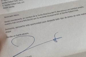 体育资讯9月23日讯 9月2日,塞维利亚签下36岁智利前锋桑切斯。巴萨发出贺信,祝贺旧将桑切斯加盟塞维利亚。