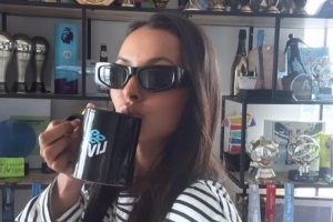 玛雅身后陈列着迪亚斯效力曼城期间斩获的奖杯复制品,其中包括英超冠军、欧冠、社区盾和足总杯等。墙上还装饰着大量单场最佳球员奖、赛季最佳阵容奖盘以及香槟酒瓶,英超冠军奖牌也悬挂其中。