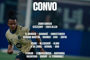 体育资讯9月25日讯 北京时间9月26日凌晨3:30,2025-26赛季西甲联赛第6轮,巴塞罗那将客战皇家奥维耶多。赛前,巴萨官方公布球队大名单,莱万领衔锋线,亚马尔缺席,小将德罗在列。