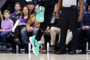 德罗赞:“不。我每场比赛都会穿一双新鞋上场。你知道有些家伙喜欢把他们的鞋磨合开。我喜欢我的鞋感觉紧紧的,就像全新的一样。所以我不需要那个磨合时间。我一直都是这样,这从我小时候就开始了。我记得我有过一些乔丹11代,还有一些乔丹9代。它们既是我上学时穿的鞋,也是我的篮球鞋。我从来不想把它们系紧或者弄出褶皱,所以我喜欢让它们保持宽松,然后穿着它们打球。我们那时总是尽可能地想让鞋子保持崭新的状态,从那以后这就成了我的一个习惯。”