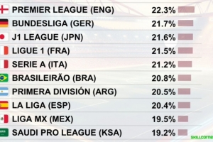 体育资讯9月29日讯 CIES盘点各联赛高速跑动距离占比排名,英超居首,德甲第二,西甲仅第八。(高速跑动定义:>15公里/小时)