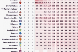 Opta预测英超夺冠概率:利物浦46.5%居首,阿森纳逆转后升至34.6%