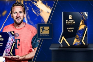 德转执行总裁托马斯-林茨点评:“凯恩一个又一个地打破纪录,他刚刚成为五大联赛历史上最快打进100球的球员。全球德转社区也认可他非凡的稳定性和进球能力,选他为2024/25赛季最佳球员。”