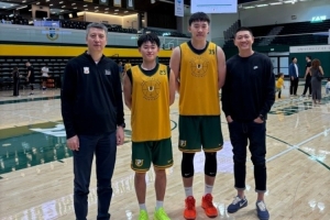 王俊杰晒出中国男篮主教练郭士强和助教李昂来到旧金山大学照片,两人观看了王俊杰和赵维伦的训练。