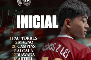 16岁邝兆镭今夏加盟西协乙球队莱里达竞技,在球队今天与萨拉戈萨预备队的季前赛中,邝兆镭身披10号球衣首发出战。