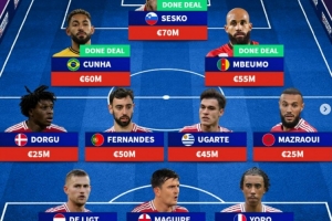 体育资讯8月9日讯 曼联官方宣布塞斯科加盟,德转也对新赛季曼联可能排出的首发阵容进行预测,具体如下: