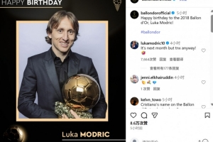 体育资讯8月9日讯 金球奖官方社媒今日晒照发文祝2018年获奖者莫德里奇生日快乐,但实际情况是莫德里奇生日为9月9日。