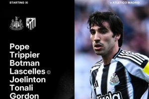 纽卡首发:波普、特里皮尔、博特曼、拉塞尔斯、乔林顿、托纳利、安东尼-戈登、巴恩斯、伊兰加、利夫拉门托、阿什比