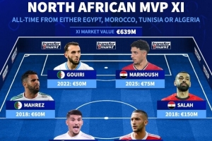 北非历史身价最高阵容:萨拉赫领衔,阿什拉夫、马尔穆什在列